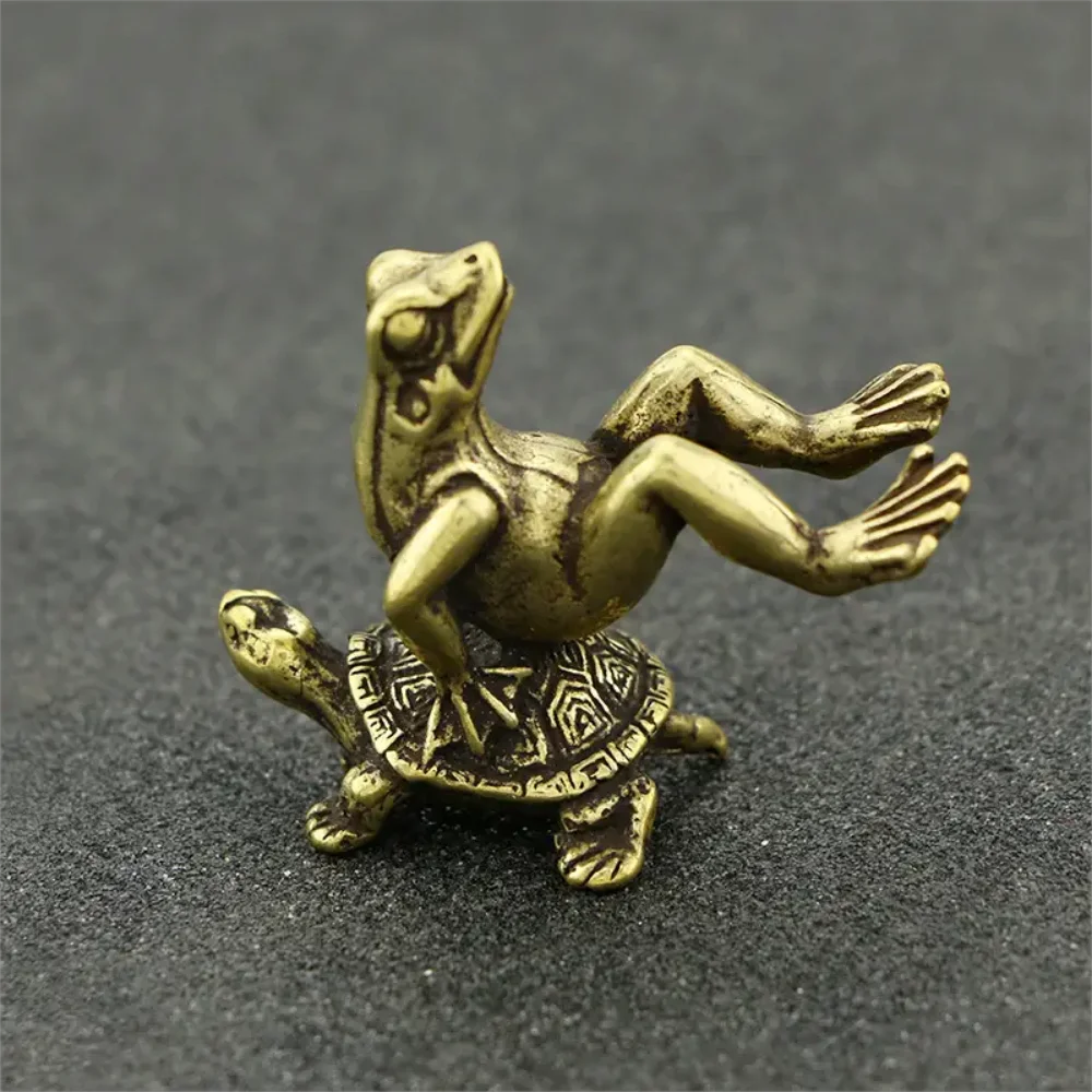 Vintage Brass Turtle & Frog Figurine - Handcrafted Solid Copper Desk Decor, Perfect for Home, Office Holiday Decorations Toy