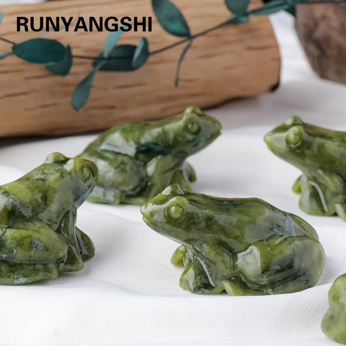 1pc Natural Crystal Green Jade Frog Statue Carved Reiki Healing Crystal Animal Figurine Crafts Home Decoration