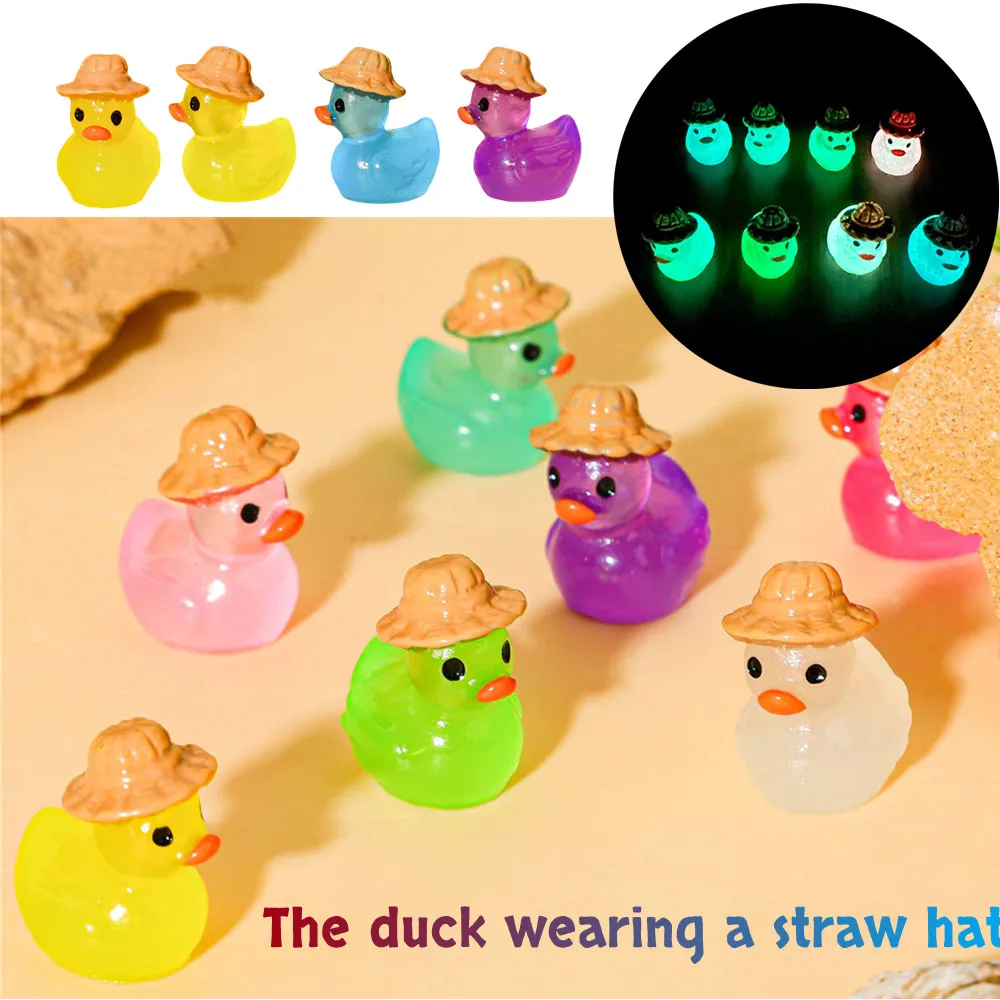 50-100PCS Luminous Mini Ducks Home Decor Miniatures Duck with Straw Hat Fairy Garden Kawaii Accessories DIY Moss Microlandscape