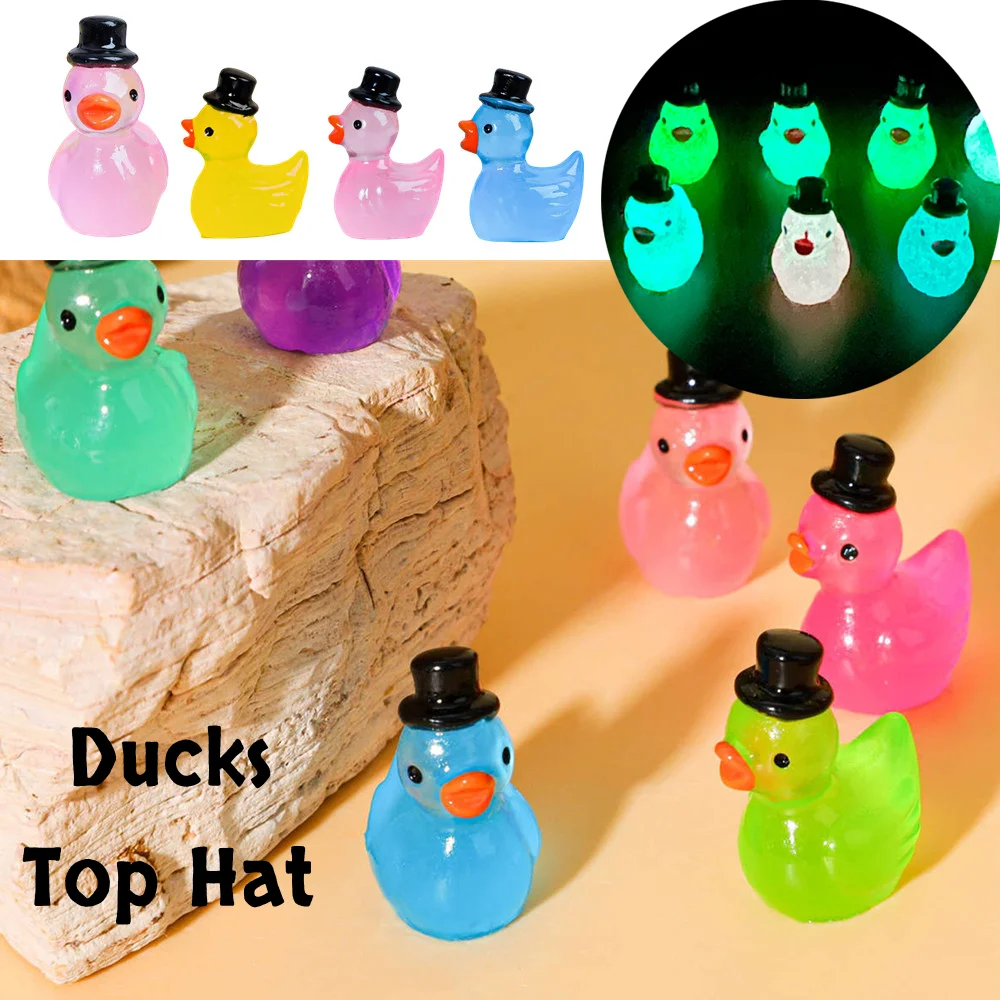 50-100PCS Mini Ducks with Top Hat Home Decor Glow At Night Luminous Duck Fairy Garden Miniatures Moss Microlandscape Decoration