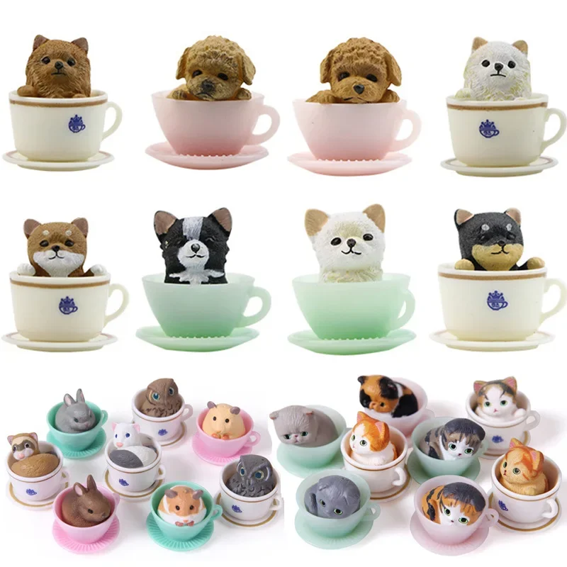 8 Pcs Teacup Dog Cats Decoration Miniature Hare Figurine Resin Crafts Mini Animals Home Garden Ornament DIY Accessories New 2024