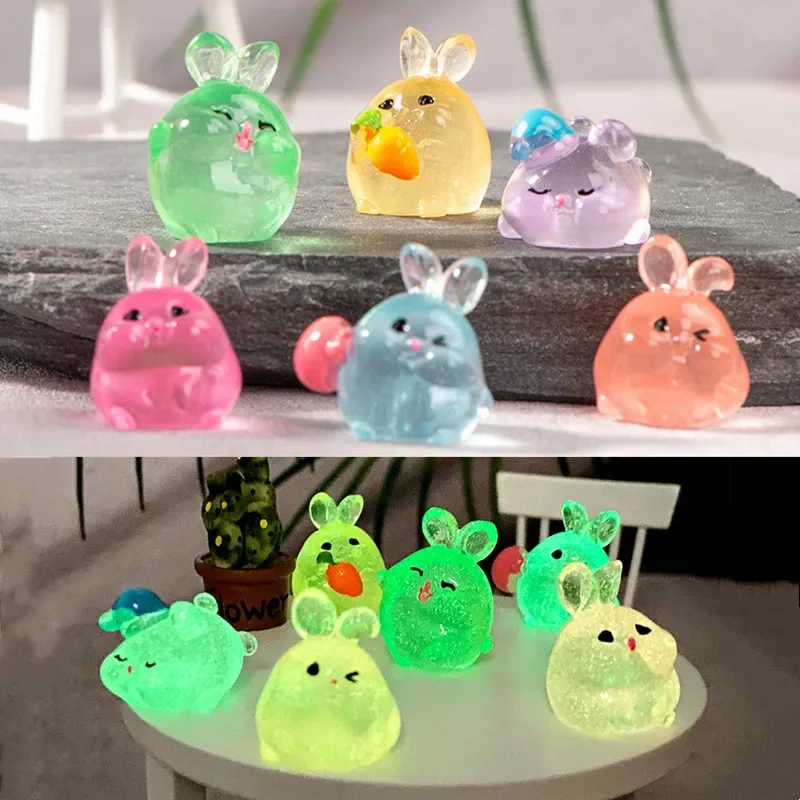 6PCS Mini Rabbits Glow At Night Fairy Garden Accessories Luminous Miniatures Rabbit Desk Decoration Kawaii Home Decor DIY