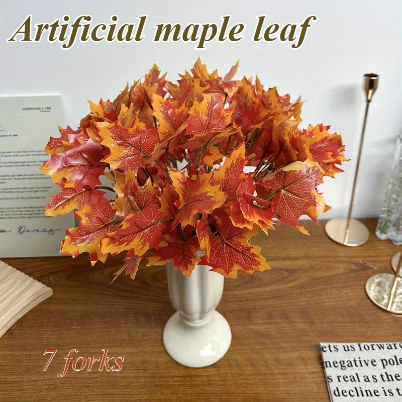30CM Artificial Maple Leaf 7 Forks Red Maple Leaf Thanksgiving Harvest Festival Family Dining Table Decoration Diy Ornament