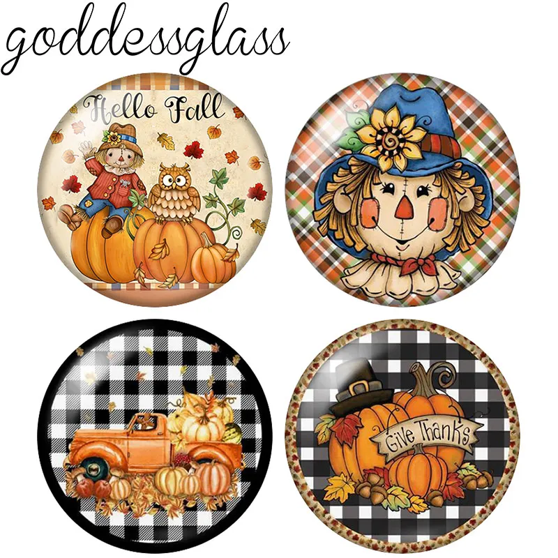 Thanksgiving Day turkey scarecrow pumpkin 10pcs 12mm/18mm/20mm/25mm Round photo glass cabochon demo flat back Making findings