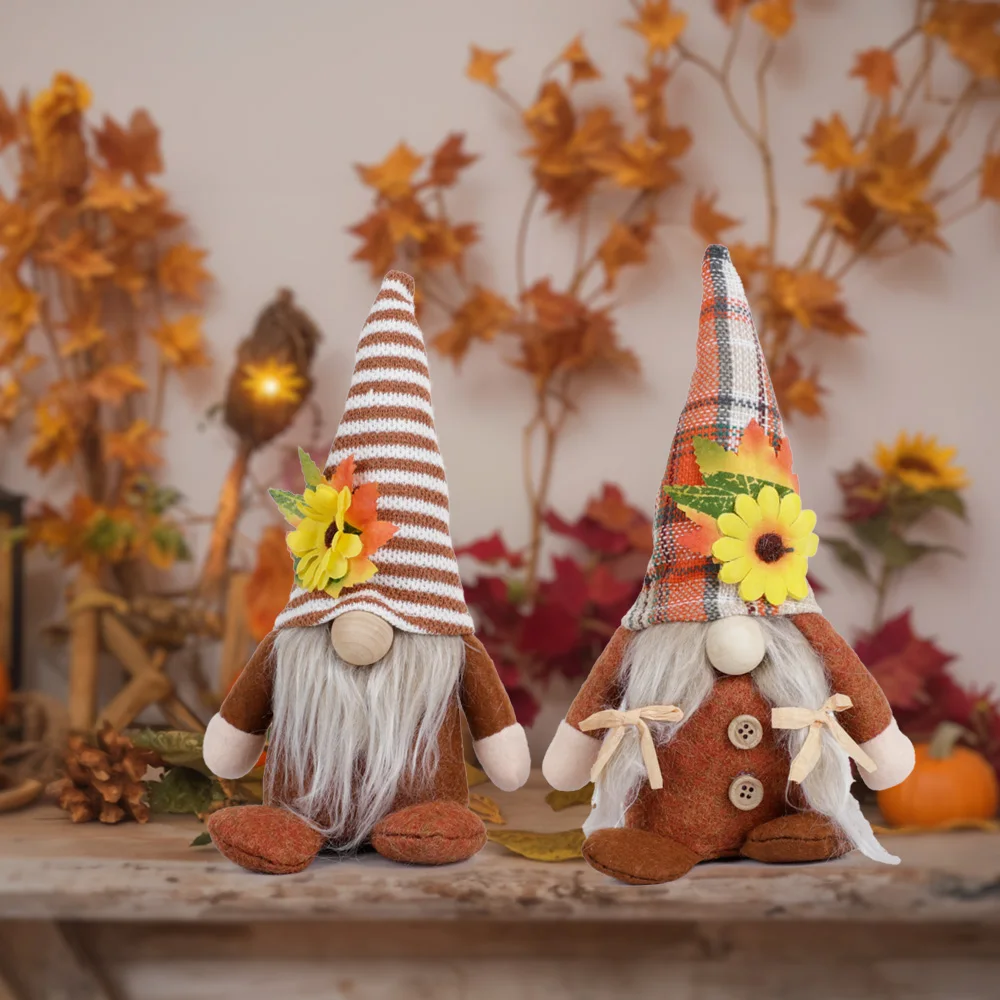 Harvest Festival Gnome Decor with Sunflower & Maple Leaf Design, Honey Bee Thanksgiving Autumn Figurine, No-Face Rustic Farmhous