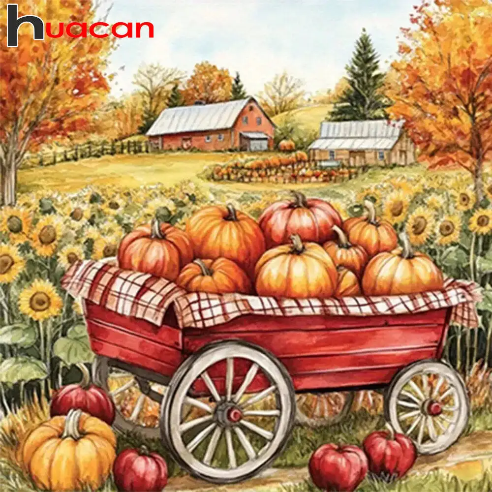 Huacan Autumn Forest Diamond Painting Pumpkin Sunflower 5D Full Square Round Drill Mosaic Art Thanksgiving Gift