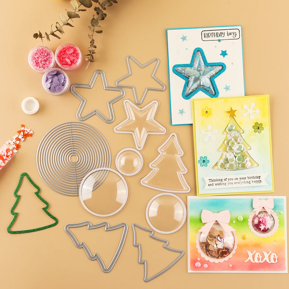 Stars Circles Trees 3D Dimensional Shaker Domes Set For Shaker Cards Making Plastic Clear Puffy Shaker Covers To Add Dimensions