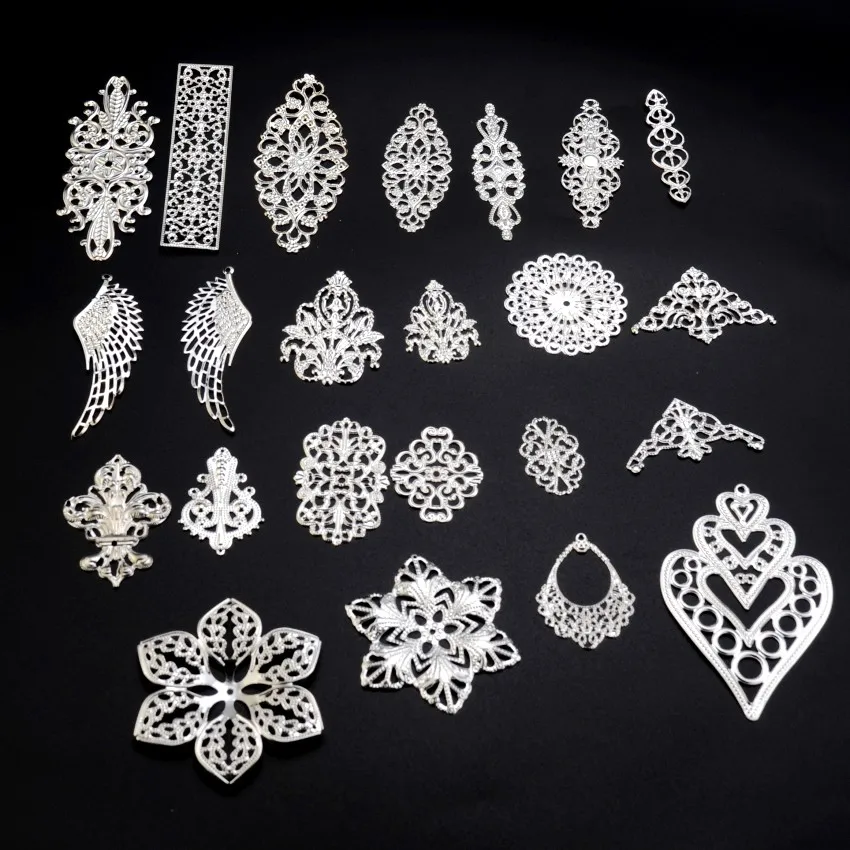 10-100Pcs Silver Color Mixed Metal Filigree Wraps Connectors Metal Crafts Gift Decoration DIY Jewelry Hollow Embellishments  Read more