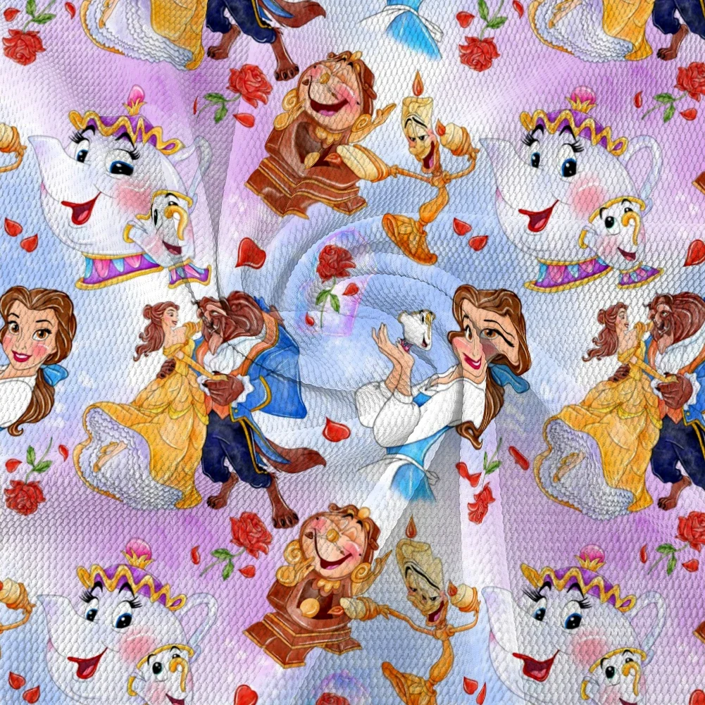 Disney Cartoon Beauty Princess Design Printed Bullet Textured Liverpool Patchwork Tissue Kids Home Textile  Read more