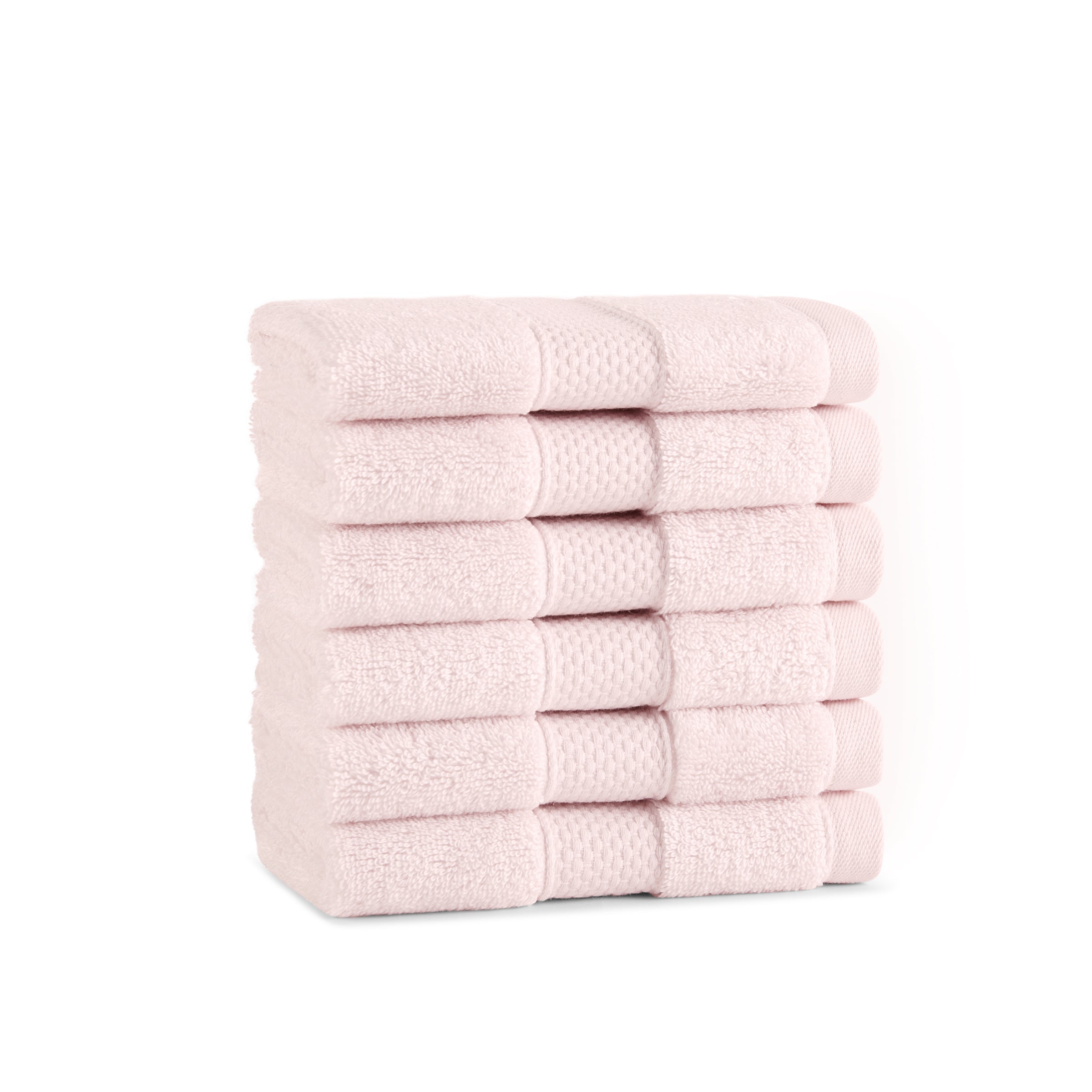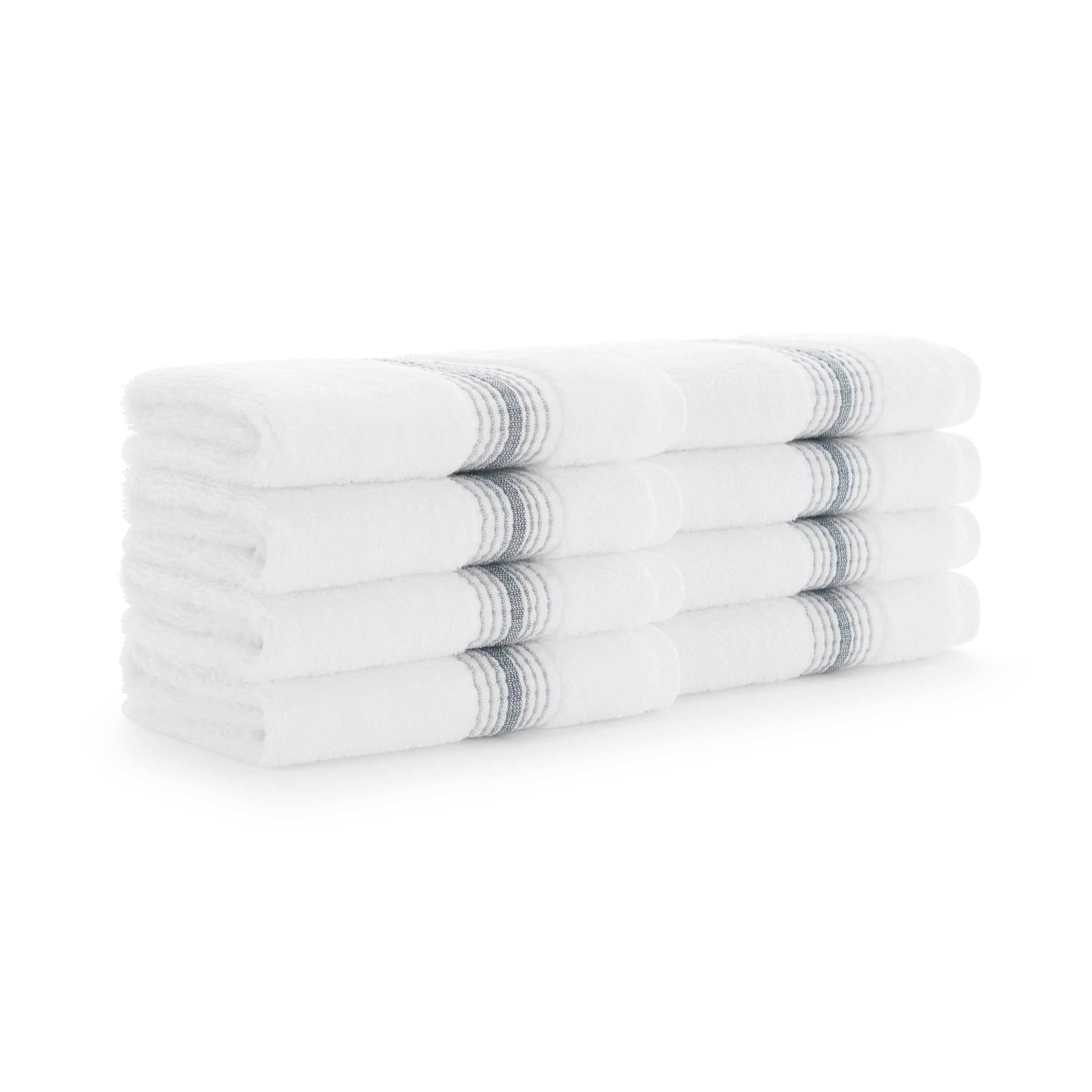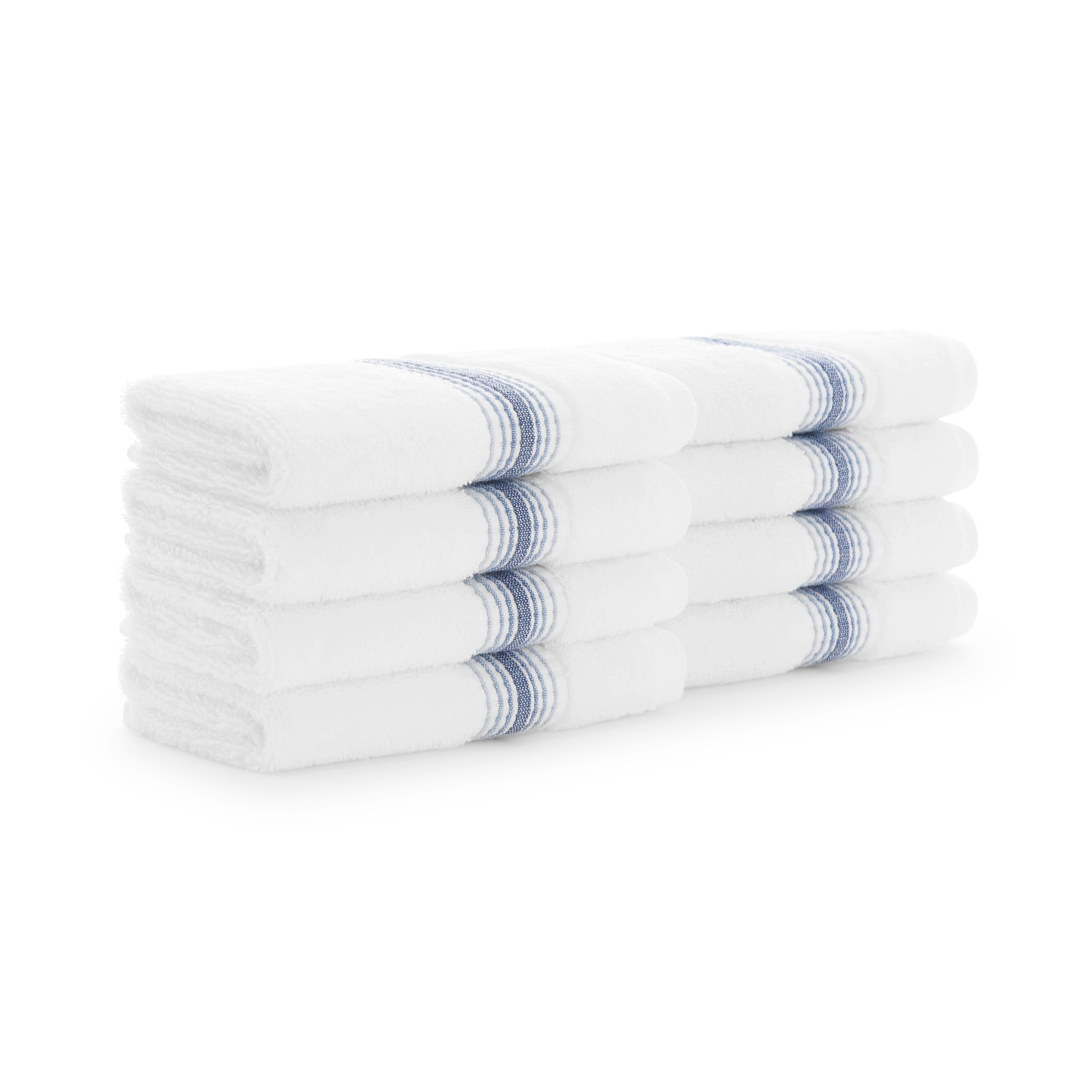 This quality line of 13x13 in. washcloths for the bathroom are available in six colors and are made from premium soft 100% ringspun cotton. These wash cloths are decorated with a stylish raised matching stripe dobby border and come in a bulk pack of...
