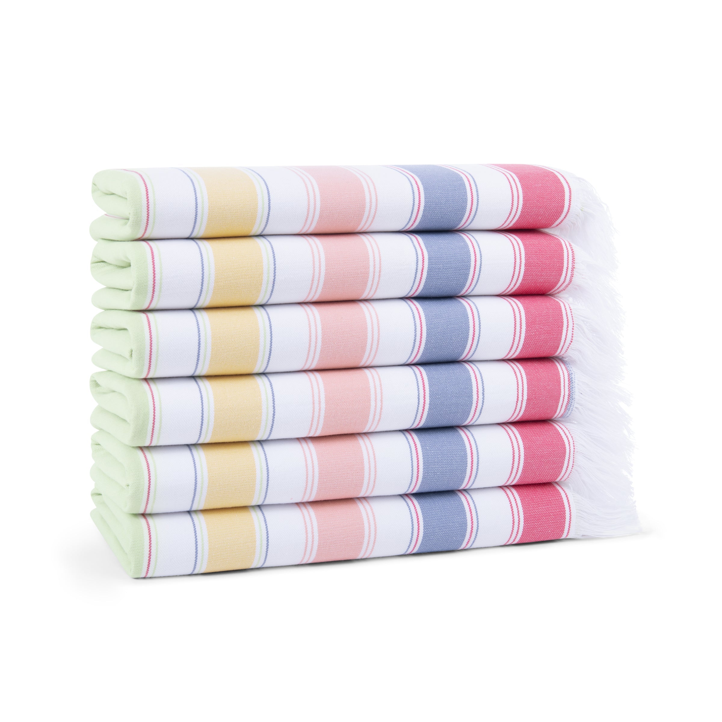 Our colorful striped Sand Free Turkish Beach Towel is as beautiful as they are versatile. Also known as Hammam towels, these 35X75 inch half towel-half blanket textiles have been traveling with adventurers for years. Turkish towels are a lightweight...