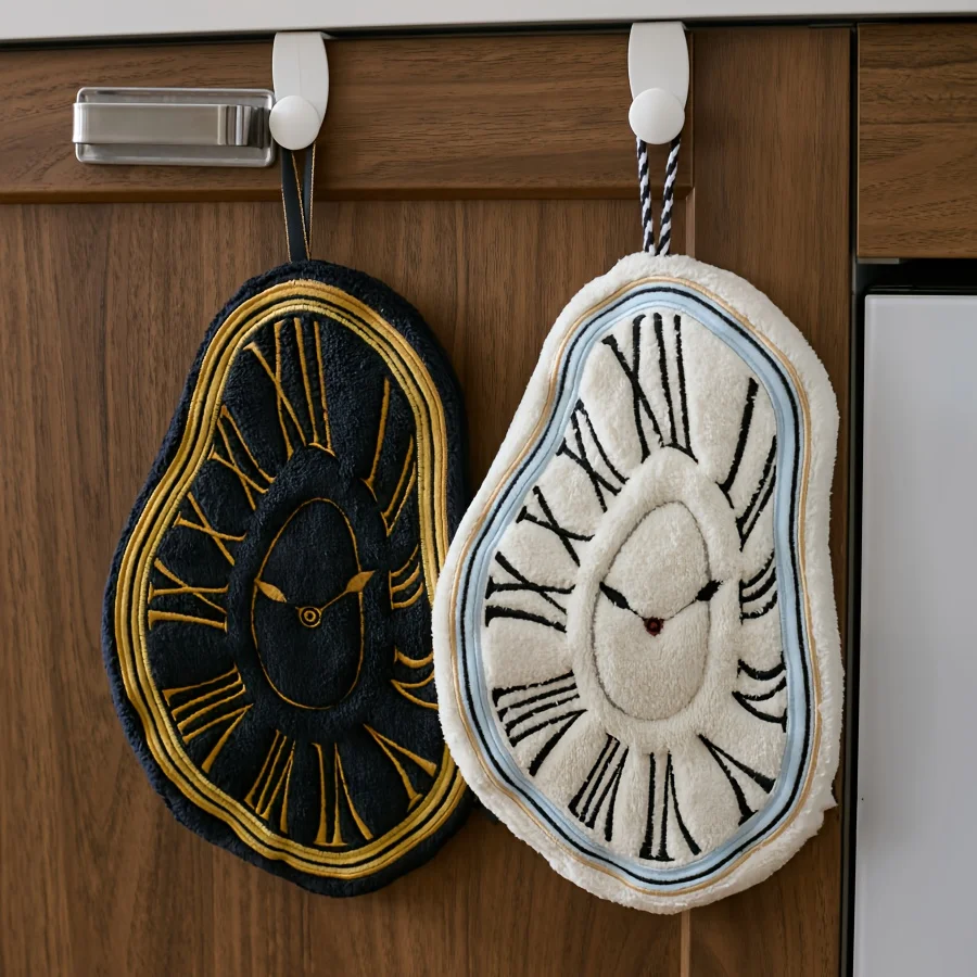 White & Black Embroidered Coral Fleece Hand Towel Creative Flowing Design for Home Kitchen & Bathroom Decorations