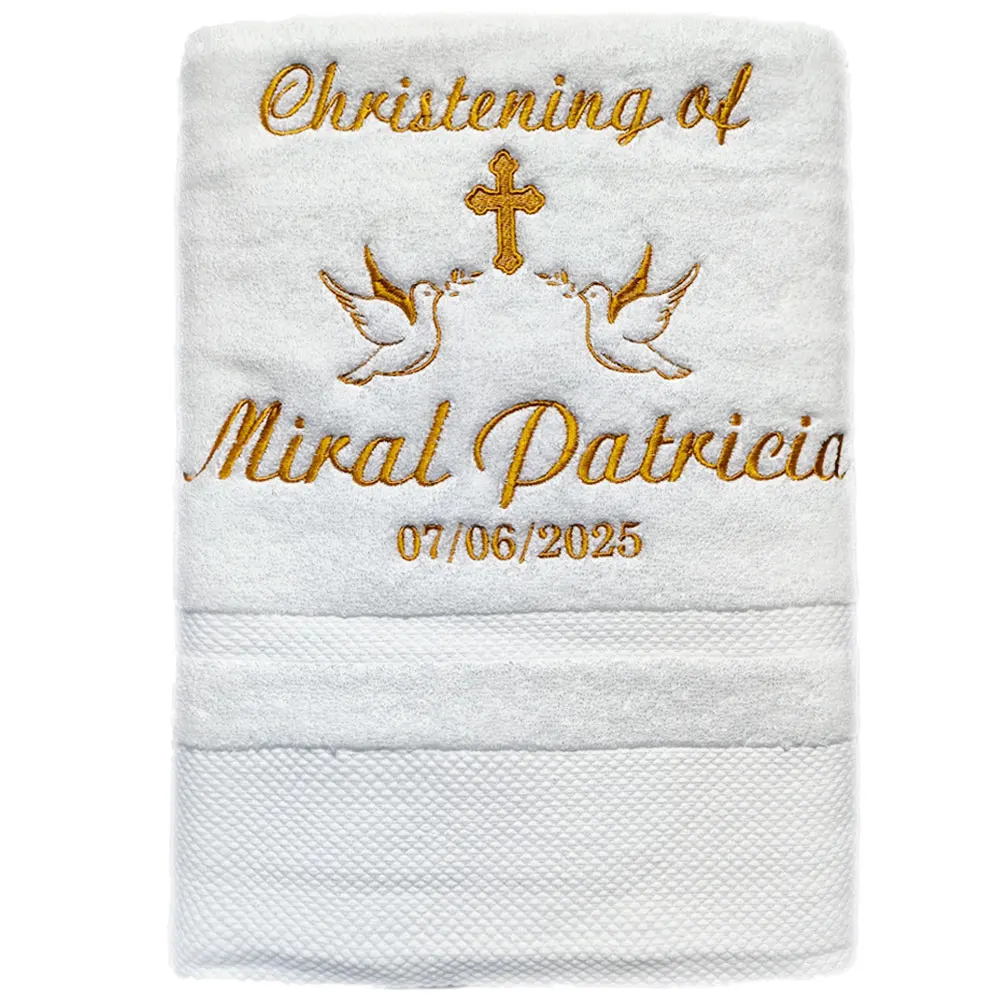 AHSNME Customized Baptism Towel 70x140cm Bath Towels for Baby Christening White Towel with Name and Date