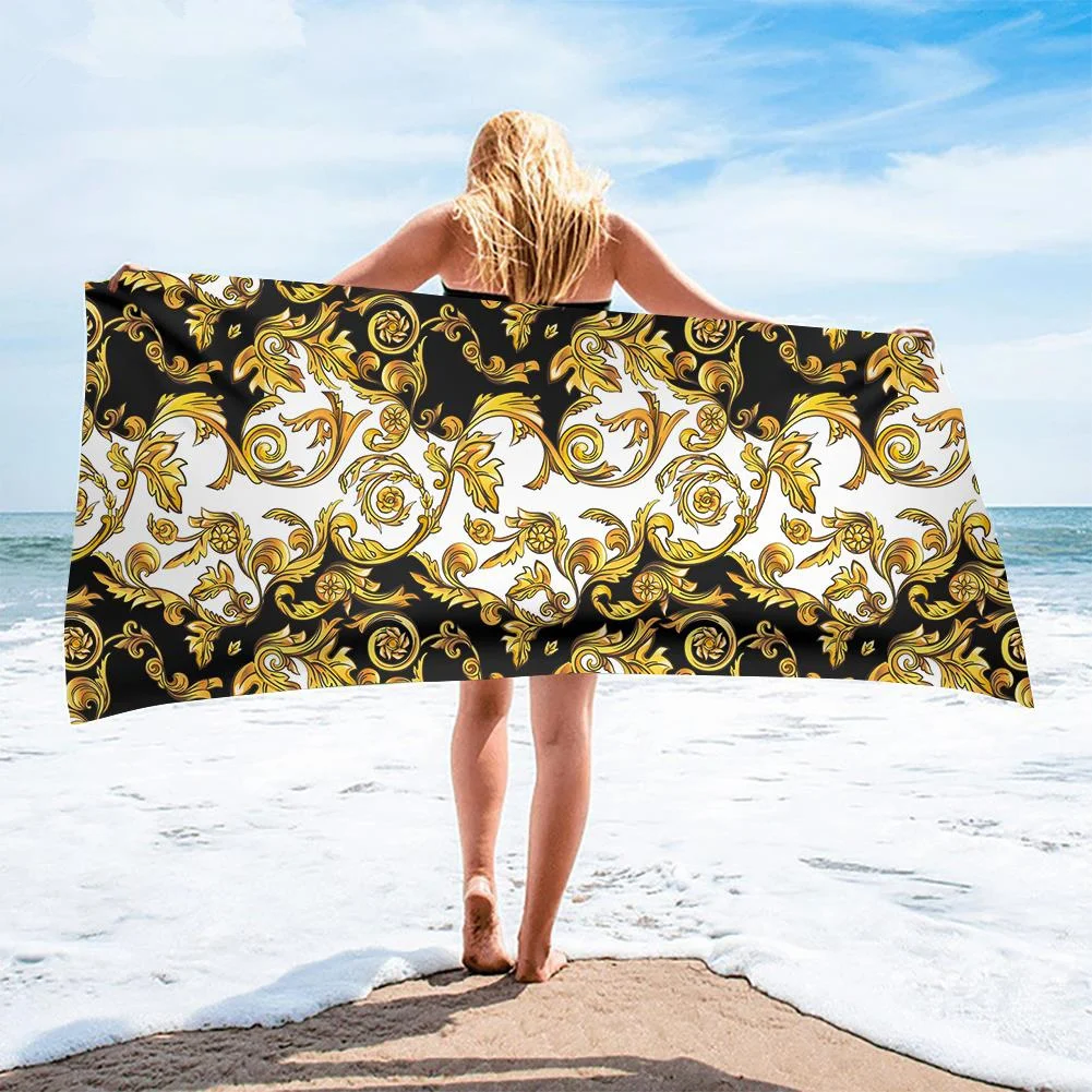 Luxury Black Gold European Design Microfiber Absorbent Beach Towels for Man Women Home Hotel Bath Towels Quick Dry Beach Towel
