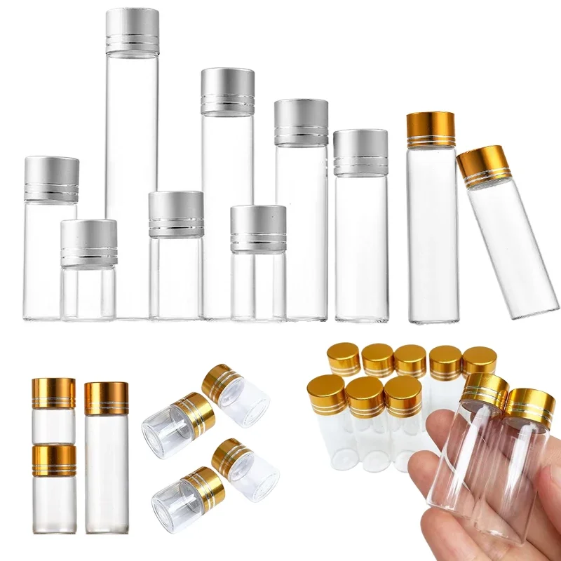 5Pcs 5ml-25ml Mini Clear Glass Bottles W/ Aluminum Lid Empty Gravel Bottle Wishing Vial Travel Sample Container For Party Gift  Read more