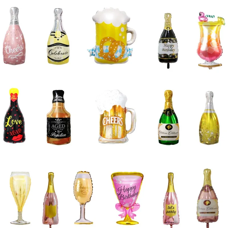 Large/Mini/Small Champagne Whisky Wine Bottle Wine Cup Film Aluminum Balloon Birthday Summer Swimming Pool Party Bar Decoration  Read more