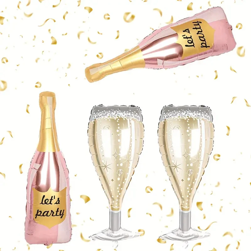 4pcs Rose gold wine bottle balloons, champagne glasses, aluminum foil balloons for birthday, anniversary, wedding decoration