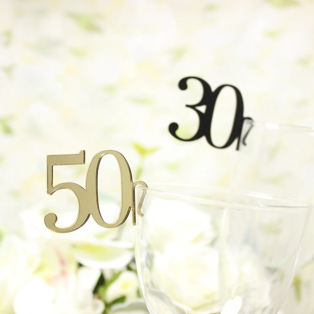 20/50/100pcs Personalized Drink Numer Tags Stirrers Wedding Drink Tags Drink Toppers Wine Charms Birthday Decor Numbers  Read more