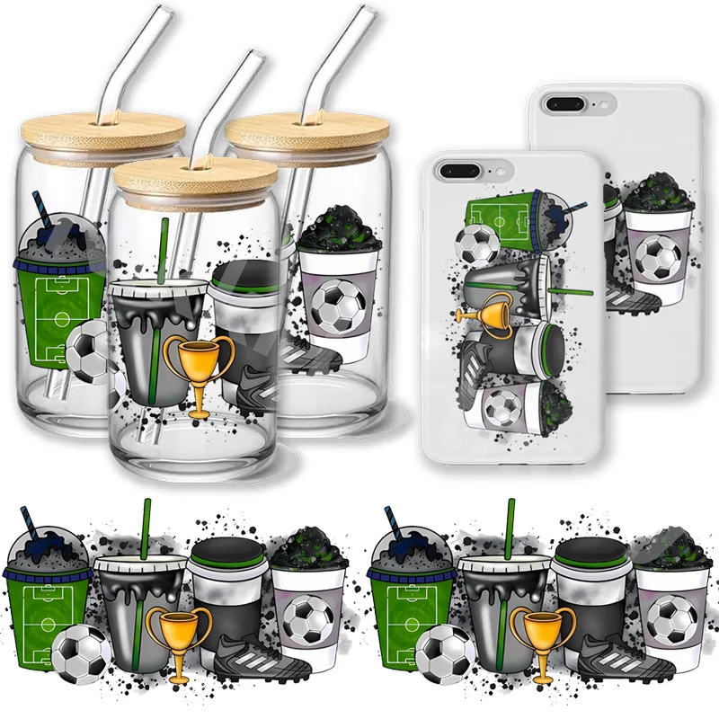 Football Stickers UV DTF Cup Wrap 16oz Cup Wraps Coffee Printed for DIY Glass Ceramic Soccer Sun Protection and Waterproof Gift