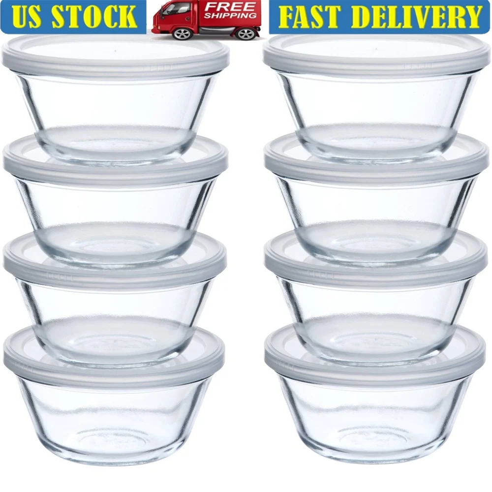 8 Piece Custard Cup Set with Lids Clear Glass Storage Containers BPA Free Dishwasher Safe Oven Freezer Microwave Safe Durable