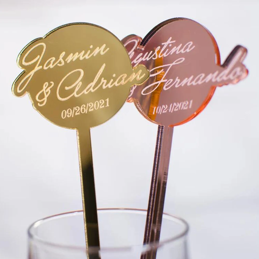 50PCS Personalized Drink Stirrers Engraved Acrylic Drink Markers Name Tag Glass Drink Charms Tags Toasting Tags Baby Shower