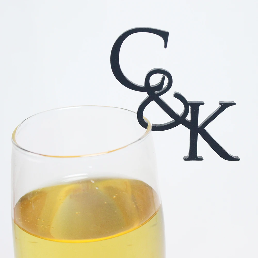 15/40/100pcs Personalized Wedding Initials tags Acrylic Stir Swizzle Sticks Cocktail Custom Drink Stirrers Glass Wine Charms