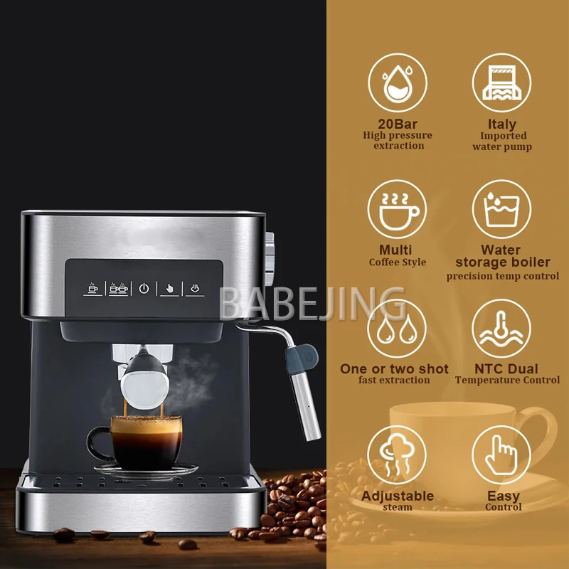 BABEJING Household Espresso Machine, Milk Steam Frosting Stick, Commercial Intelligent Coffee Machine