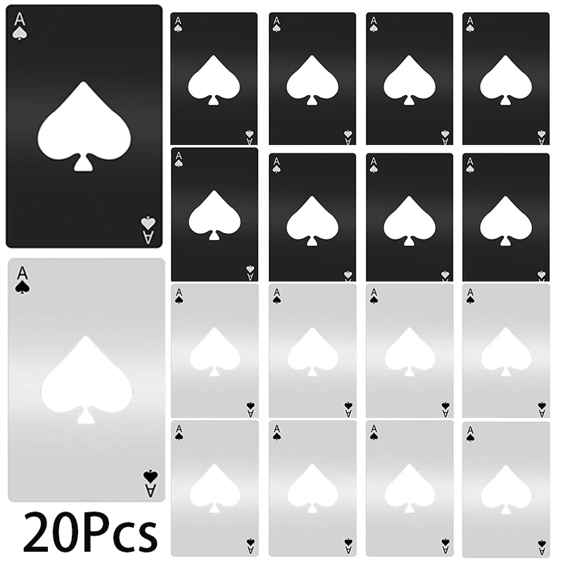 20Pcs Poker Card Bottle Openers Stainless Steel Can Openers Beer Opener Ace Card Bottle Cap Openers Poker Cap Openers