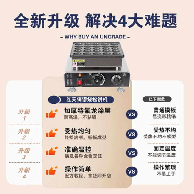 25 Hole Mini Pancake Maker, Multifunctional Small Waffle Maker, Commercial Small Round Cake Maker