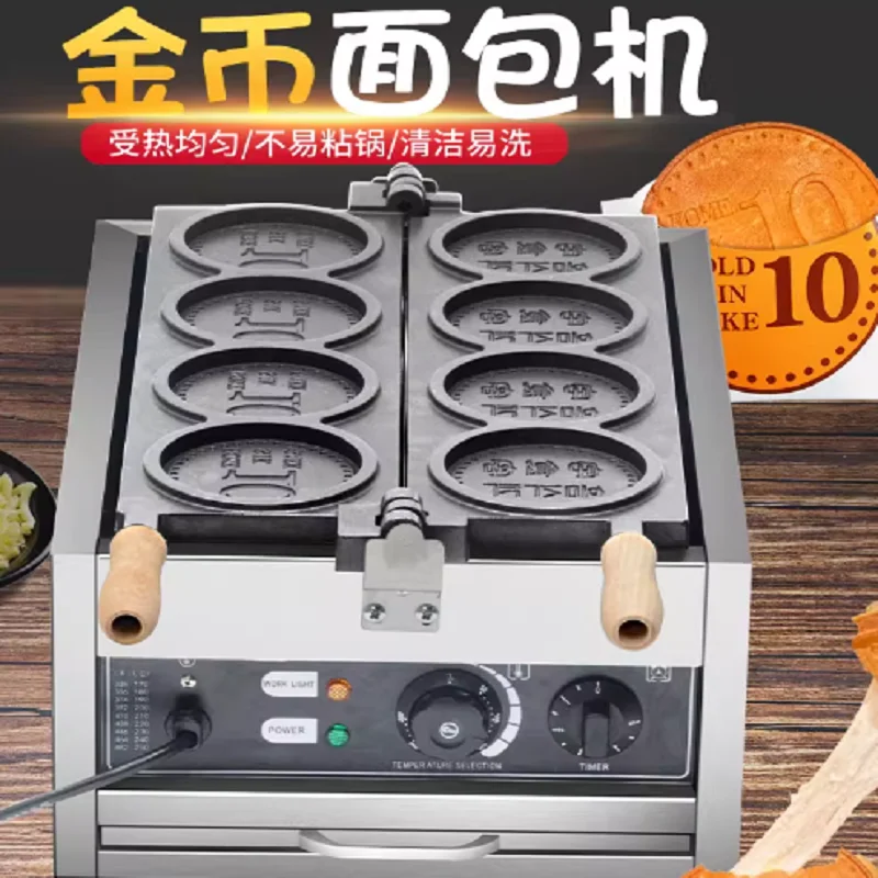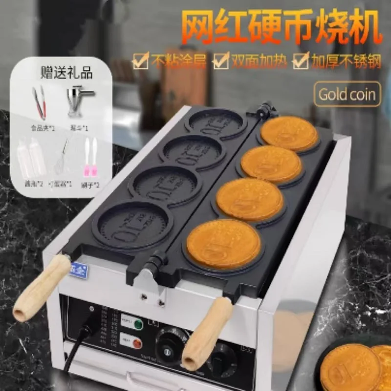 Commerical 4 Pcs Cheese Bread Round Gold Coin Waffle Maker With 220V