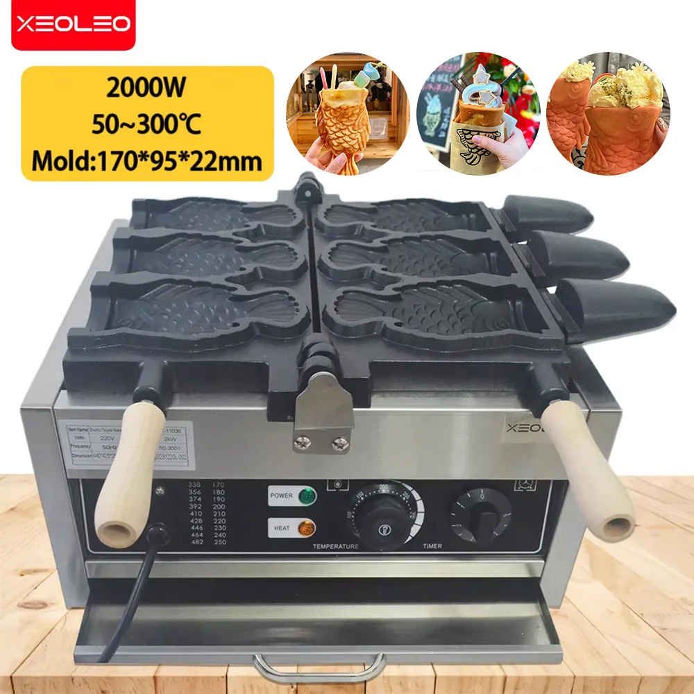 XEOLEO Ice cream Taiyaki machine Electric Waffle maker Open mouth Fish shaped cake maker 3pcs Non-stick pan Snack equipment