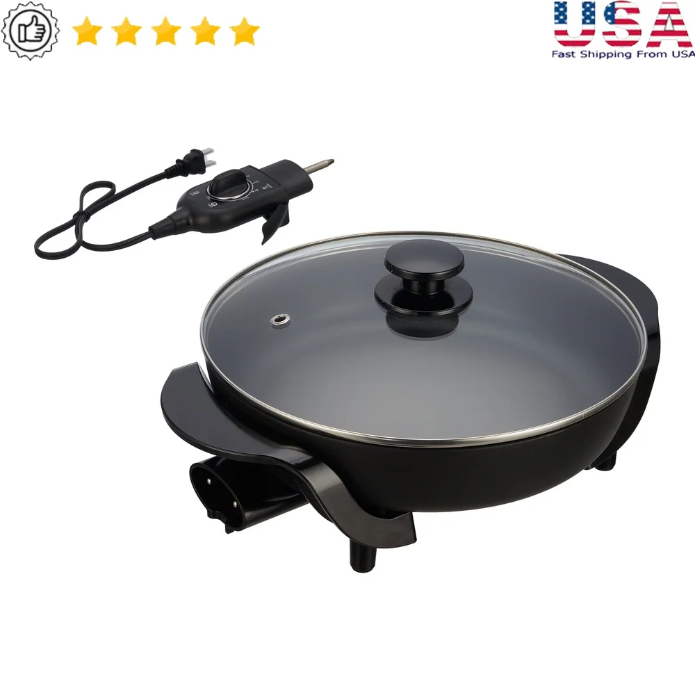 1200W Nonstick Electric Skillet 12 Inch Ceramic Cookware Dishwasher Safe Adjustable Temp Control with Glass Lid Easy Meal Prep