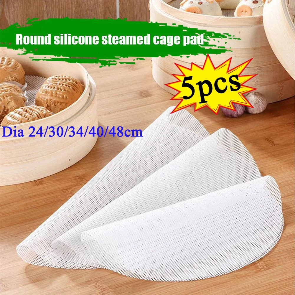 5Pcs Kitchen Non-stick Steamer Cloth Circular Silicone Steamer Cloth Steamed Mantou Mat Kitchen Accessories Dia 24/30/34/40/48cm