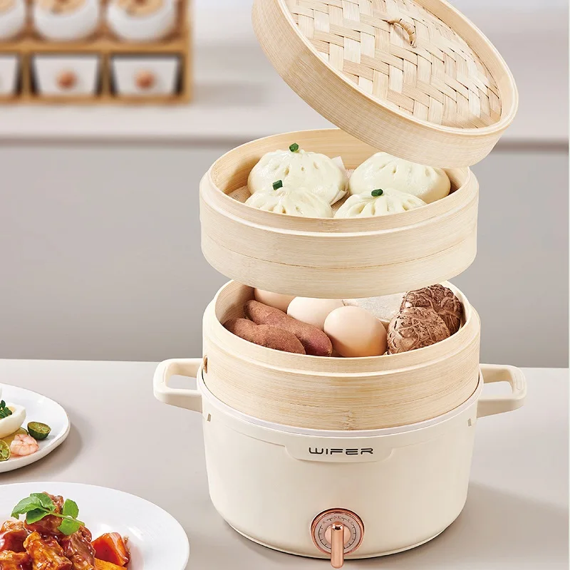 2.2L Double-layer Bamboo Cage Electric Steamer Multi-function Electric Cooking Pot Home Breakfast Machine Electric Hot Pot 700W