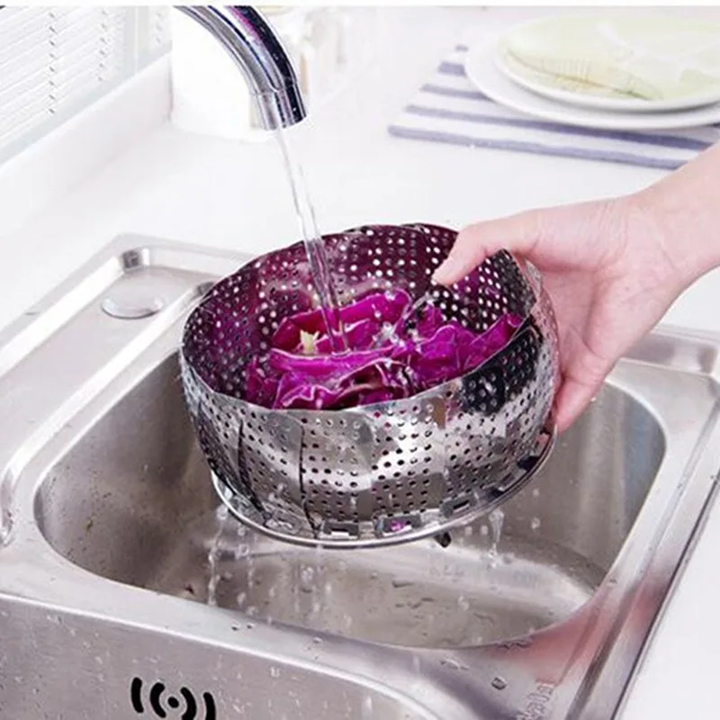 Stainless Steel Multifunctional Steamer Plate Silver Retractable Folding Steaming Food Steamer Vegetable Fruit Basket