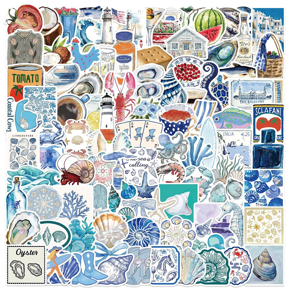 10/30/50/100pcs Cute INS Style Blue Marine Coast Aesthetic Stickers Decals Laptop Phone Fridge Scrapbooking Decoration Sticker