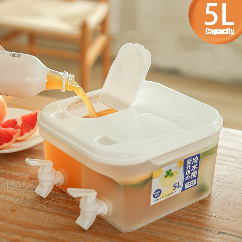 5L Large Cold Kettle Refrigerator With Double Faucet Lemonade Bottle Drinkware Kettle Pot Beverage Dispenser Cool Water Jug