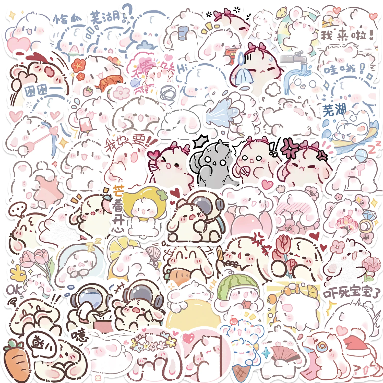 90PCS Mini Lop Ear Rabbit Pink Kawaii Bunny Cute Sticker Art Decoration Guitar Car Refrigerator Phone Laptop Diary Party Sticker