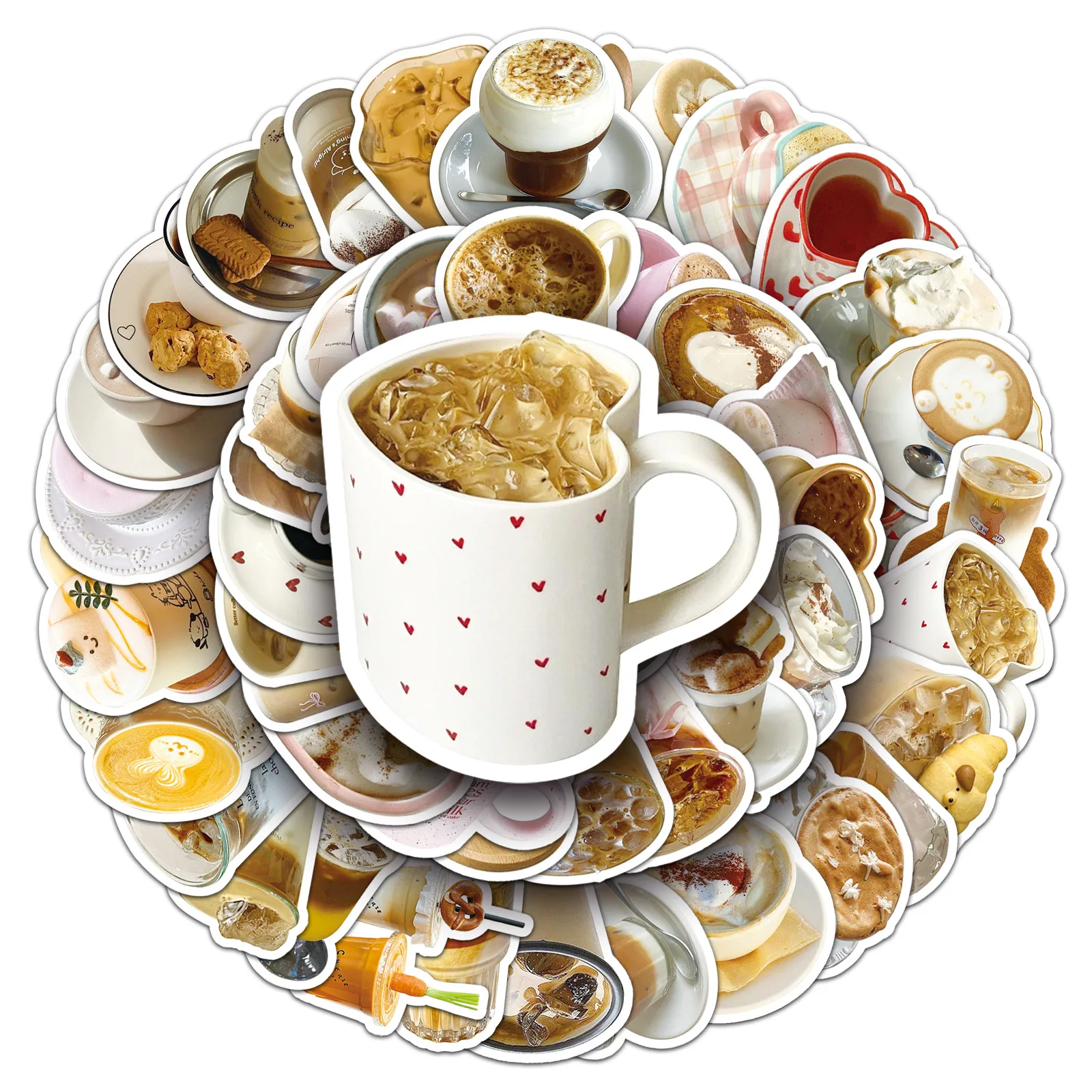 10/30/50PCS Coffee Ins Style Brown Drink Food Food DIY Laptop Refrigerator Water Cup Luggage Phone Case Waterproof Decal Toy