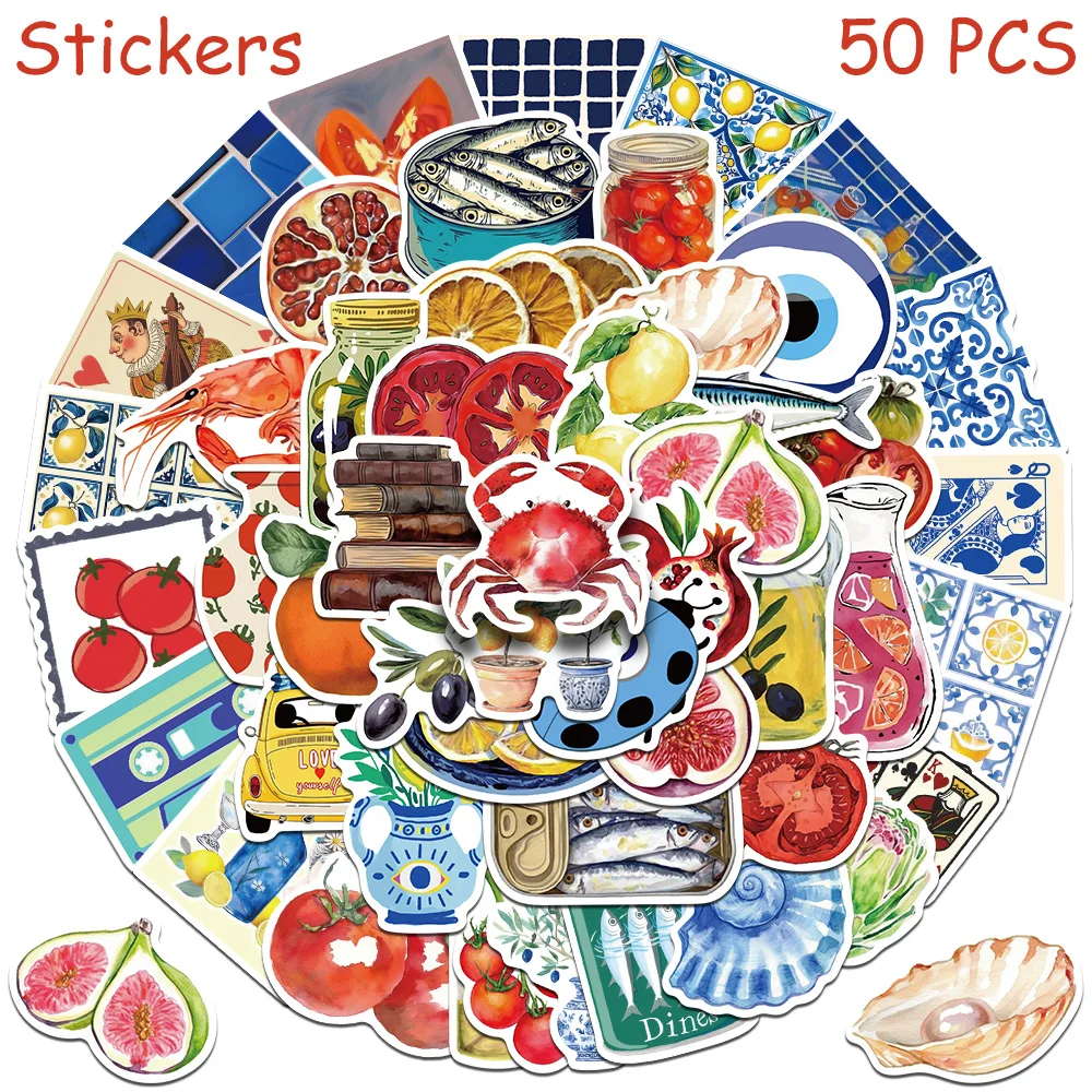 50pcs Retro Mediterranean Tomato Stickers Decals For Phone Notebook Refrigerator Skateboard DIY Aesthetic Waterproof Stickers