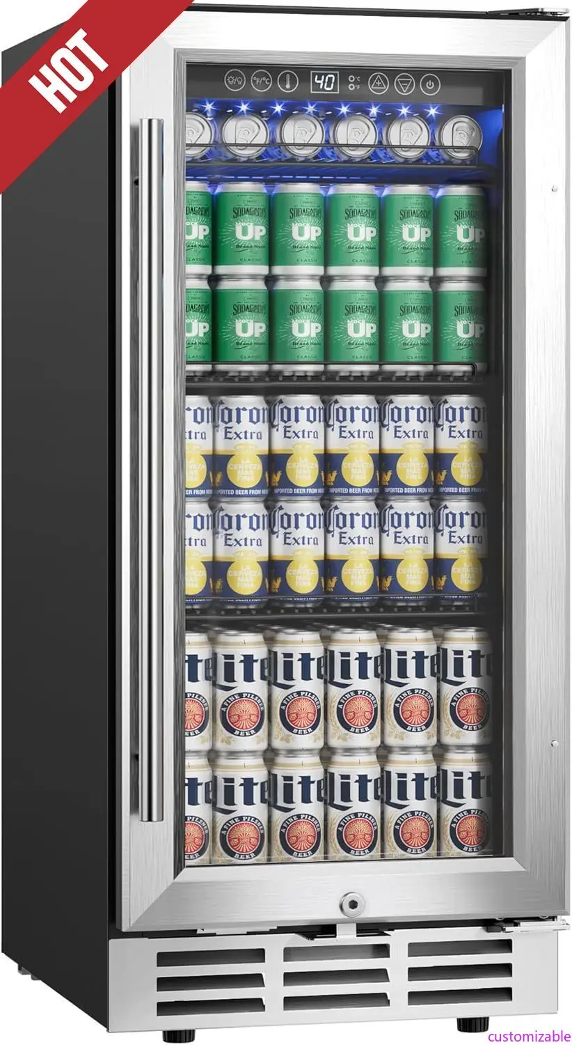 Customizable 15Inch Beverage Refrigerator Cooler Under Counter 127 Cans Beverage Fridge Built-in or Freestanding with Glass Door  Read more