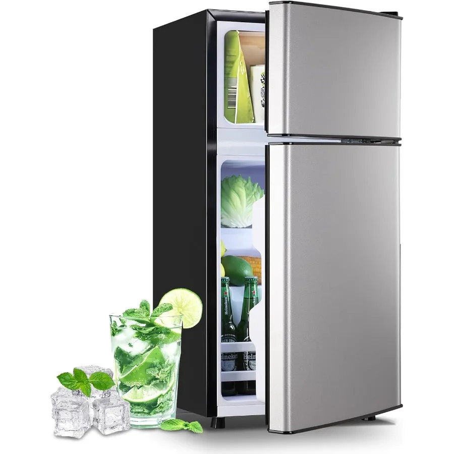 Mini Fridge with Freezer 3.5 cu.ft Small Refrigerator Energy Saving, Low Noise, Double Door Compact Refrigerator for Office