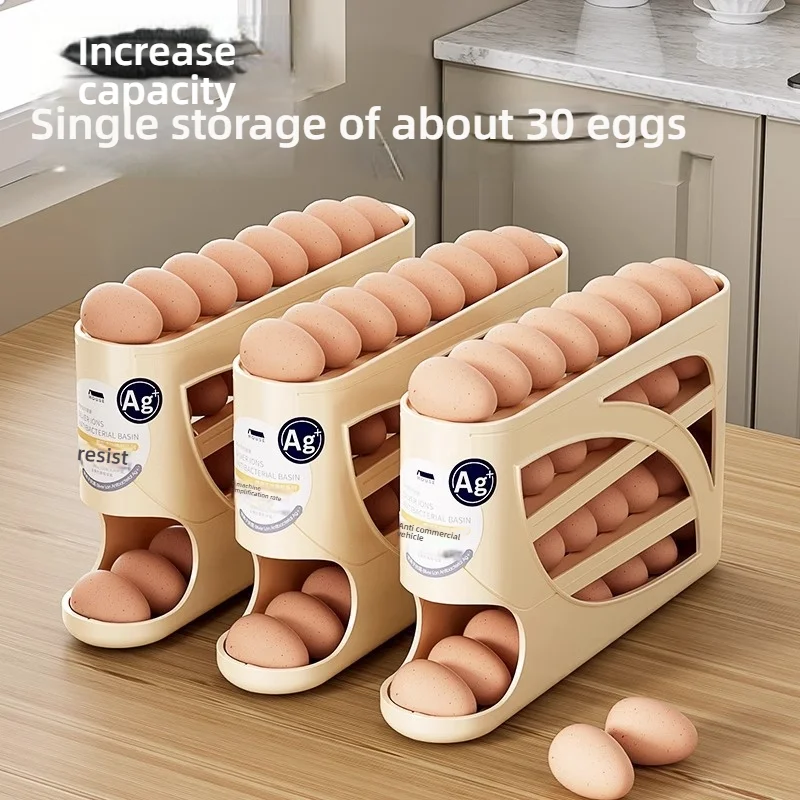 Thickened Rolling Egg Storage Box Double-Door Fridge Side Door Egg Rack Holder Home Egg Freshness Organizer Space-Saving Design