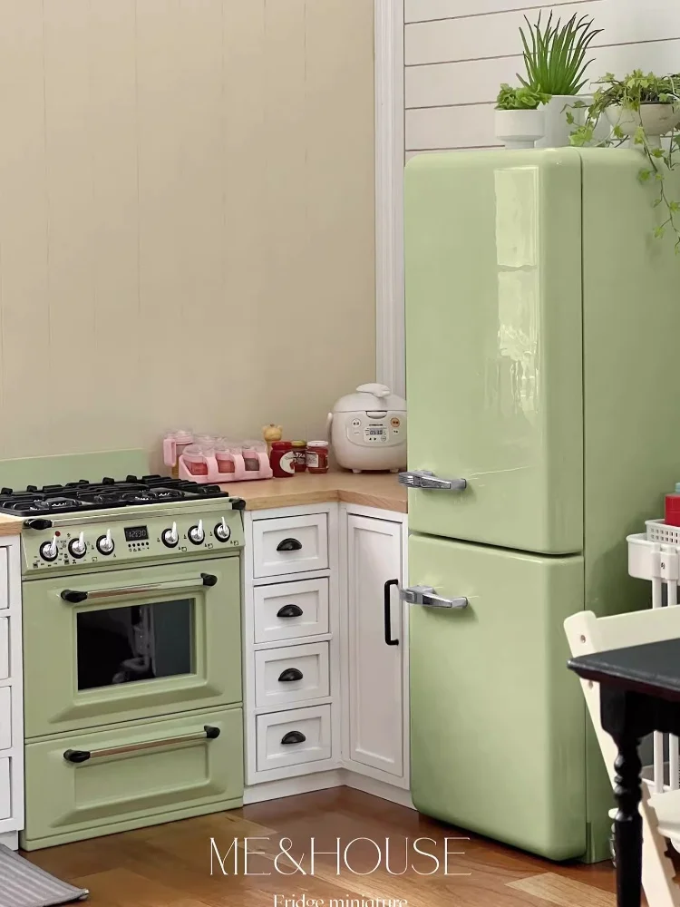 Cute Simulation Microfilm Furniture Double Door Refrigerator 1:12 Dollhouse Kitchen Model Decorations For Girl Birthday Gifts
