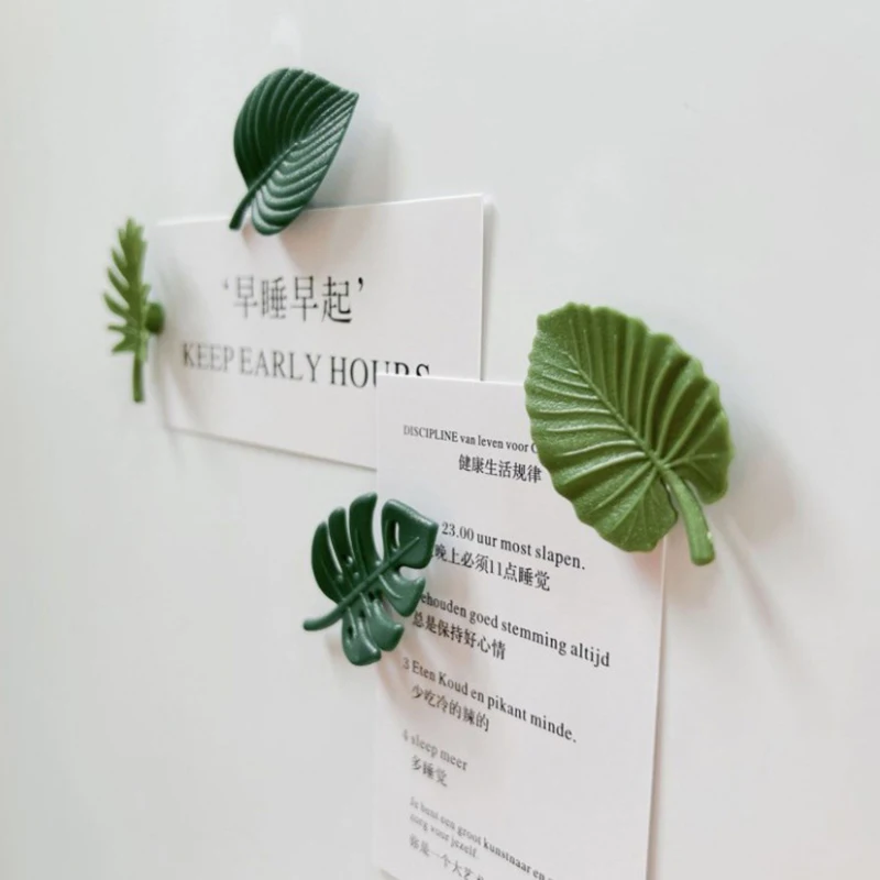 4Pcs Fridge Magnets ABS Mini Refrigerator Stickers Waterproof Fixing Refrigerator Magnets Tropical Leaves Fridge Stickers