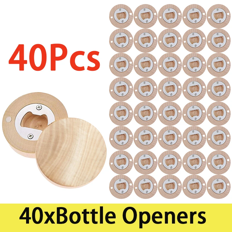 40Pcs Wooden Round Simple Fridge Sticker Bottle Opener Refrigerator Magnet Bottle Openers Universal Kitchen Accessories  Read more