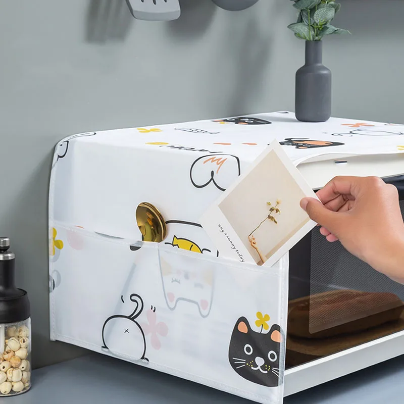 Microwave Dust Cover with Pocket Reusable Microwave Cover with Cartoon Design To Prevent Dust and Fumes in The Kitchen and Home