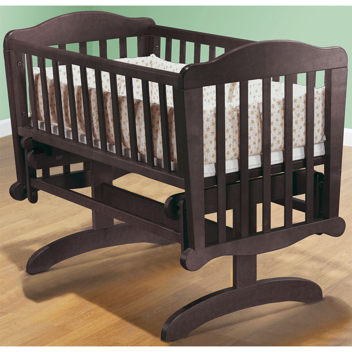 The Sorelle Dondola Cradle includes a cradle mattress The dondola cradle is made from Pine with smooth, hand rubbed surfaces and corners. Dimensions:38" x 22.5" x 34"