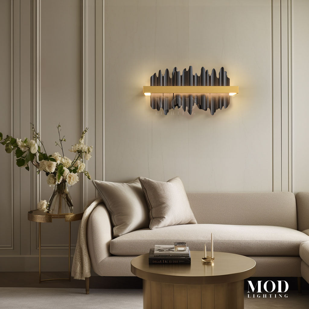These are the matching Sconces for your Aurelius Chandelier. It's edgy, bold, and unapologetically striking — it's Aurelius. This horizontal wall-mounted sconce features an irregular border that mimics the beauty of glowing icicles, making it the...
