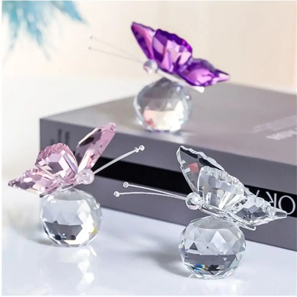 Crystal Butterfly with Ball Figurine Home Wedding Decoration Glass Craft Collection Paperweight Table Ornaments Souvenir Gifts